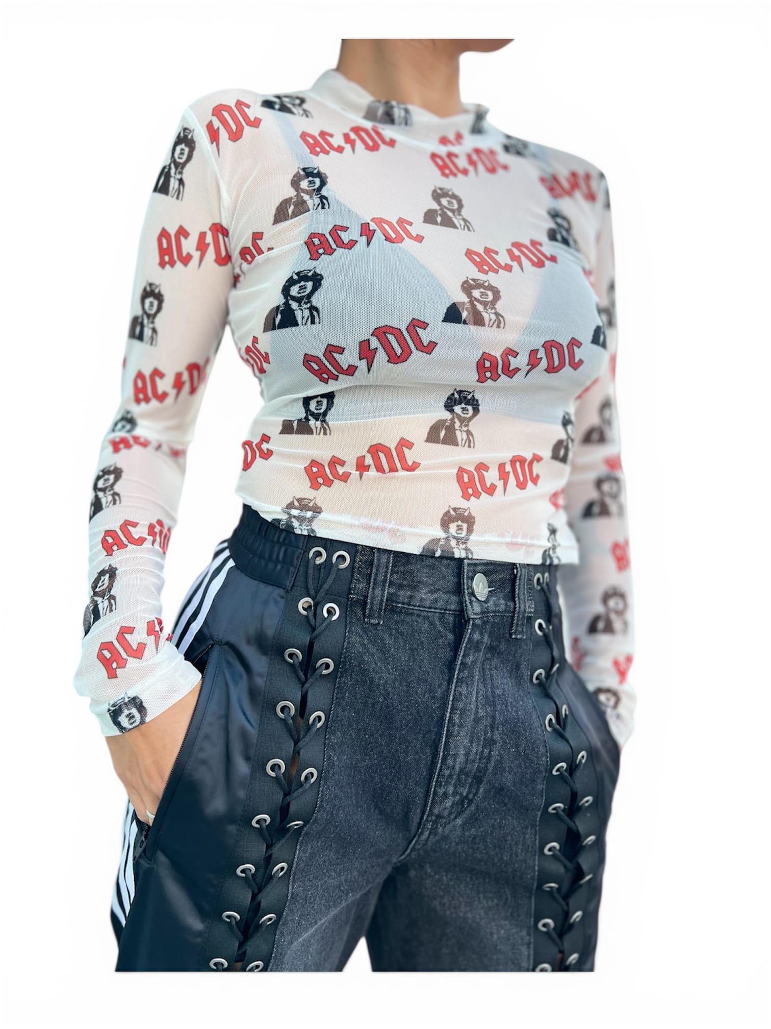 REMERA MICRO TUL ANGUS YOUNG. Tul importado. Diseño exclusivo y propio, cuenta con tela importada de doble rebote. Fino, elegante, sensual. Talles Small (1), Medium (2), Large (3), XL (4). Pedidos Especiales consultar con Nuestro Centro de Atención al Cliente por Whatsapp.
