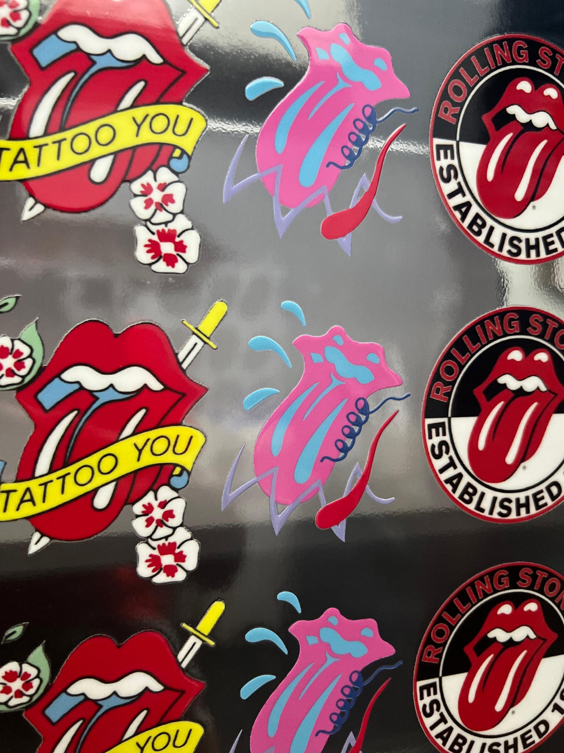 The Rolling Stones 108 Stickers Premium DTF UV Pro laqueados de 7 cm de alto cada uno. A razón de $ 421 cada uno!!!
